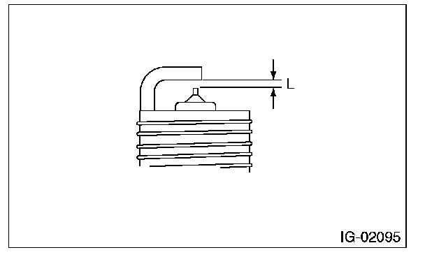 3. Using a nylon brush, etc., clean and remove the carbon or oxide deposits from the spark plug. If deposits are too stubborn, replace the spark plugs. After cleaning the spark plugs, check the spark plug gap "L" using a gap gauge. If it is not within the standard, replace the spark plug.