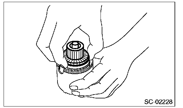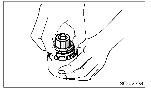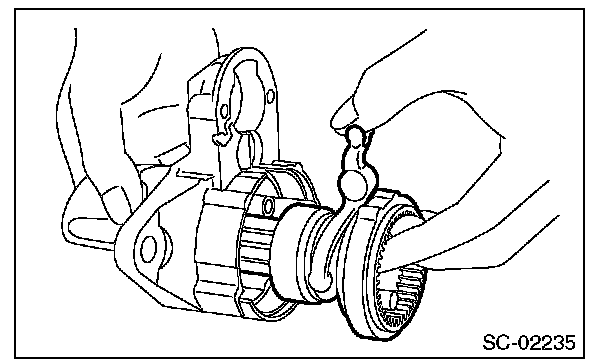 4. Assemble the overrunning clutch, internal gear assembly, shaft and shift lever as a single unit into the starter housing assembly.