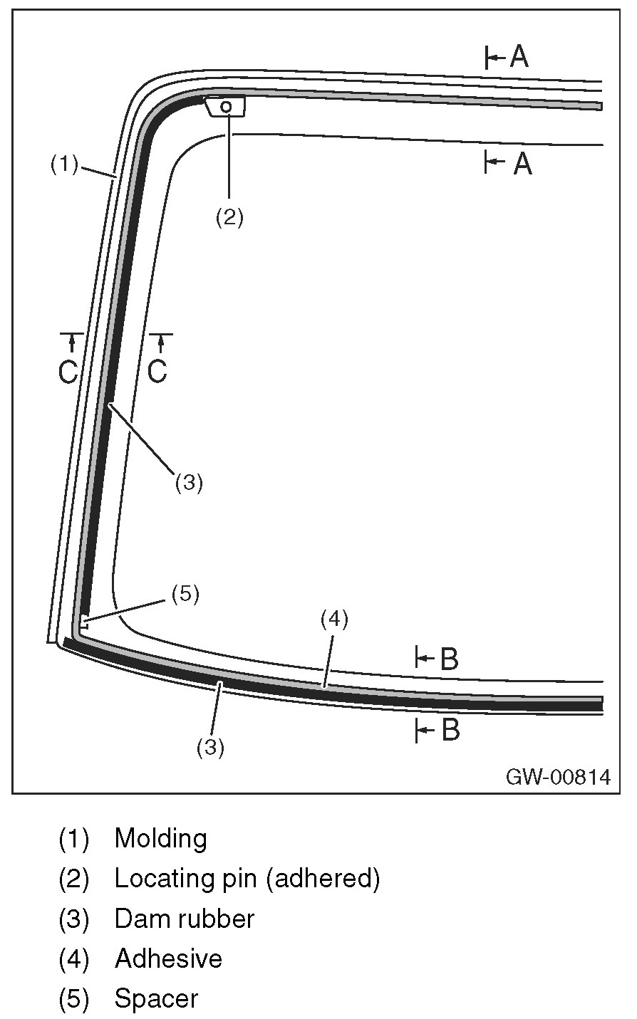 - For minimum drying time and vehicle standing time before driving after bonding, follow instructions or instruction manual from the adhesive manufacturer.