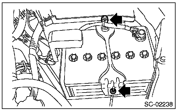 2. Remove the harness clip of the negative terminal from the battery rod.