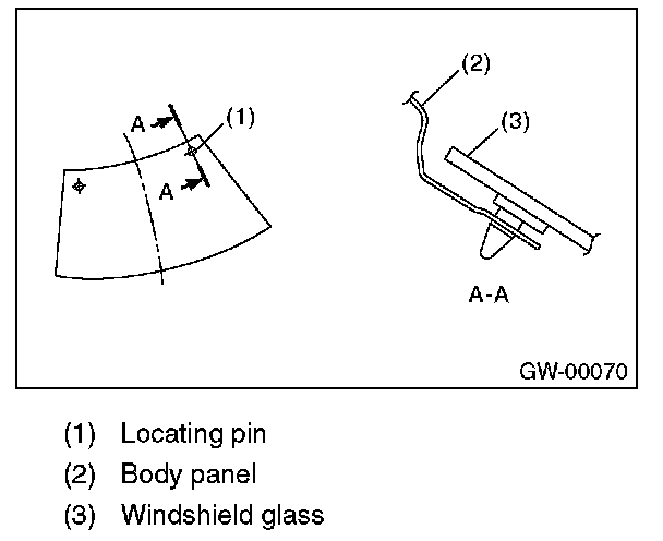 10. Fit the locating pins to vehicle body using suction rubber cup to install the windshield glass.