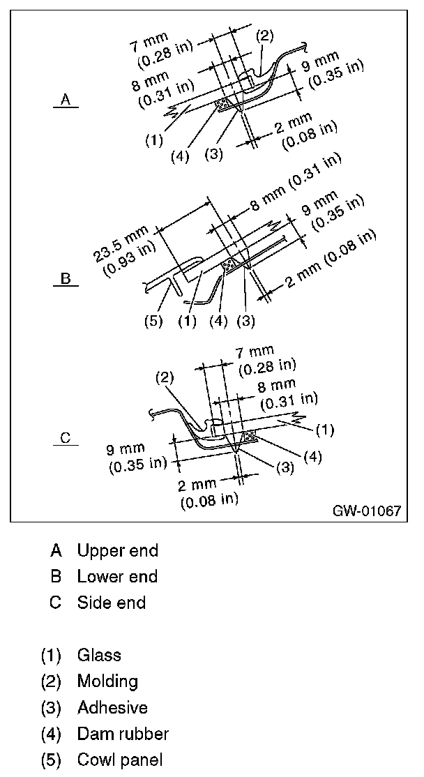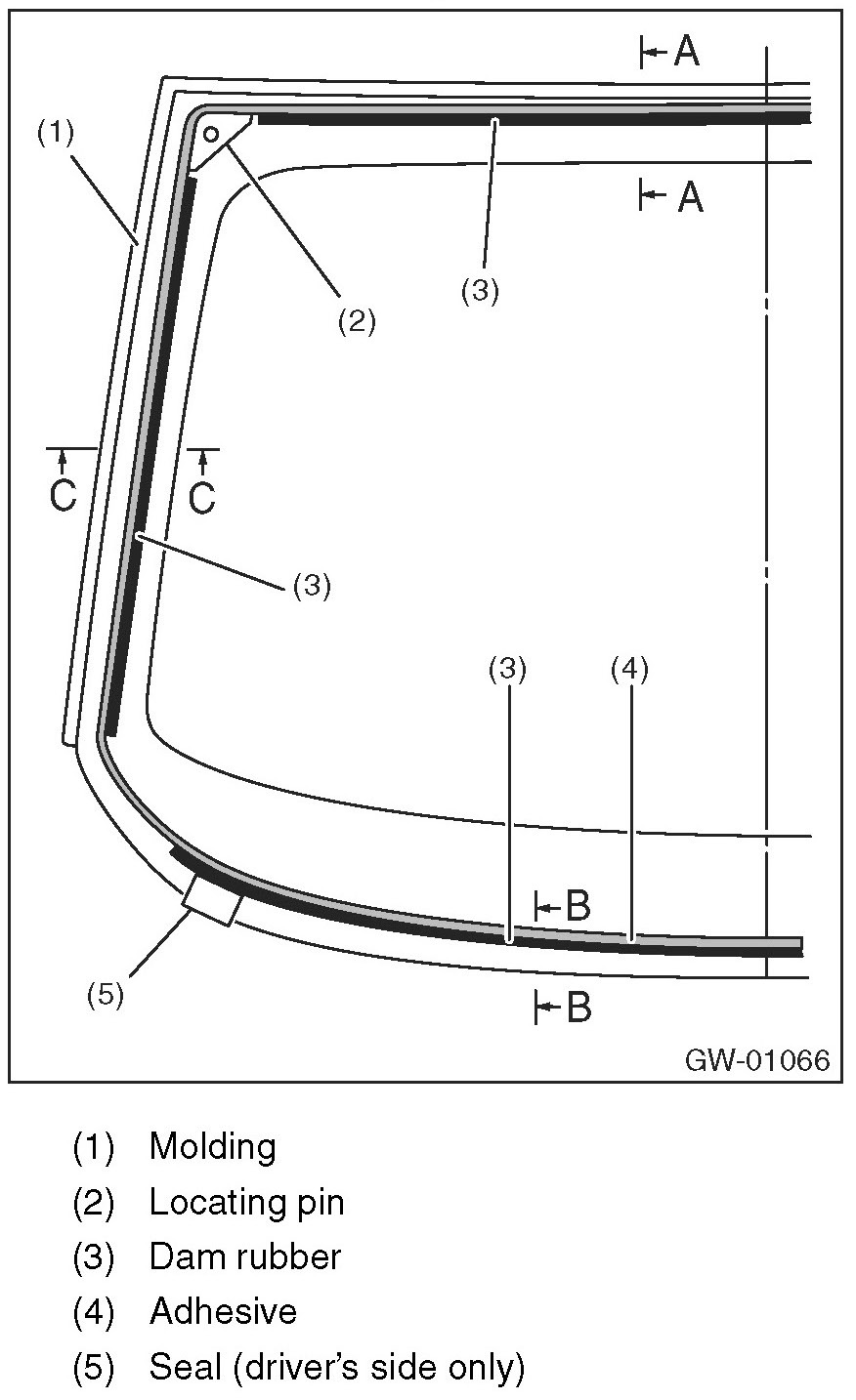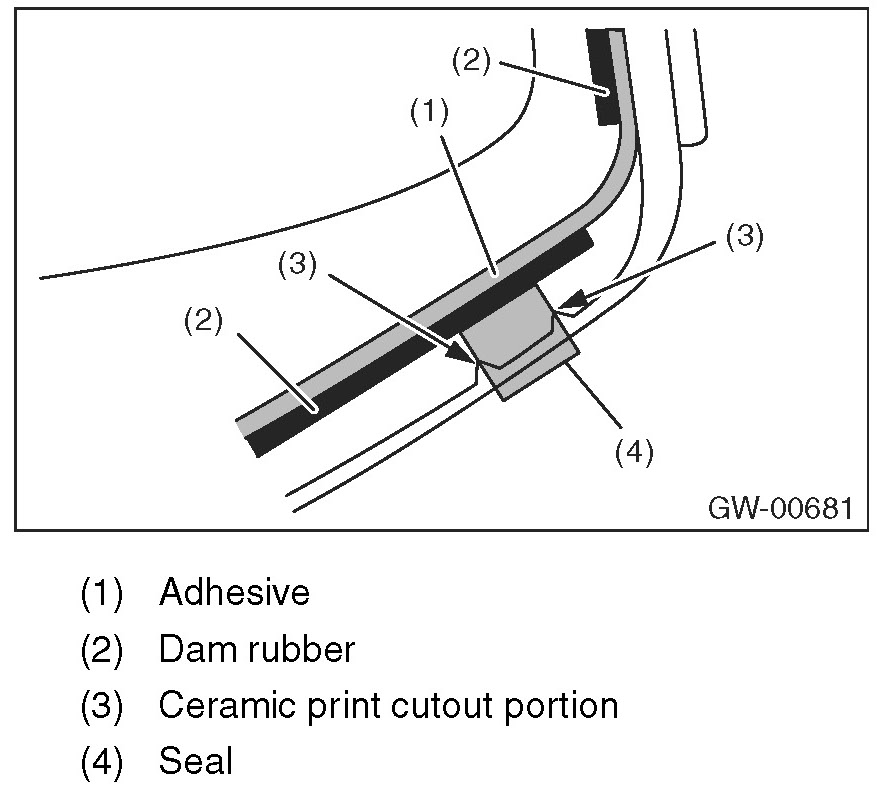 - For minimum drying time and vehicle standing time before driving after bonding, follow instructions or instruction manual from the adhesive manufacturer.