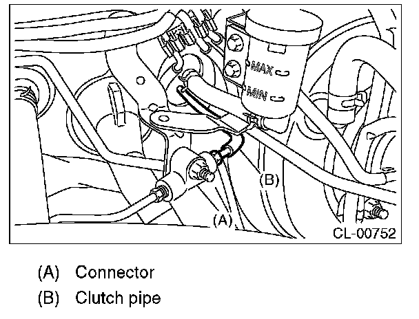 7) If the clutch fluid level does not increase or push rod does not retract, readjust the clutch pedal.