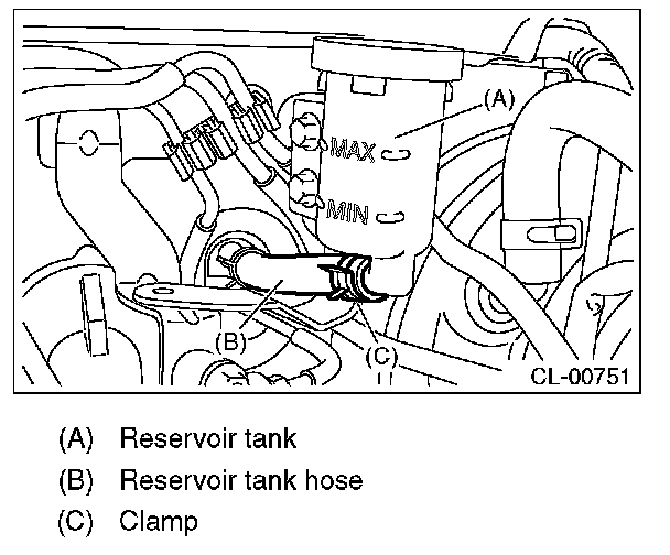 7) Disconnect the reservoir tank hose from the reservoir tank.