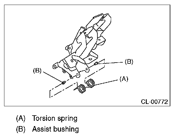 4) Install the assist bushing and torsion spring to the pedal assembly.