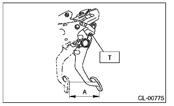 3) Measure the clutch pedal full stroke length again to ensure that it is within specifications. If it is not within specifications, repeat adjustment procedures again from the beginning.