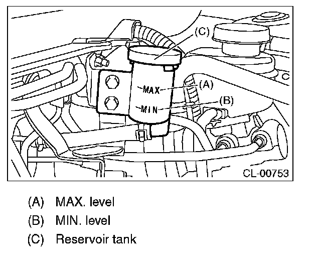 6) If the clutch fluid level increases, hydraulic clutch play is correct.