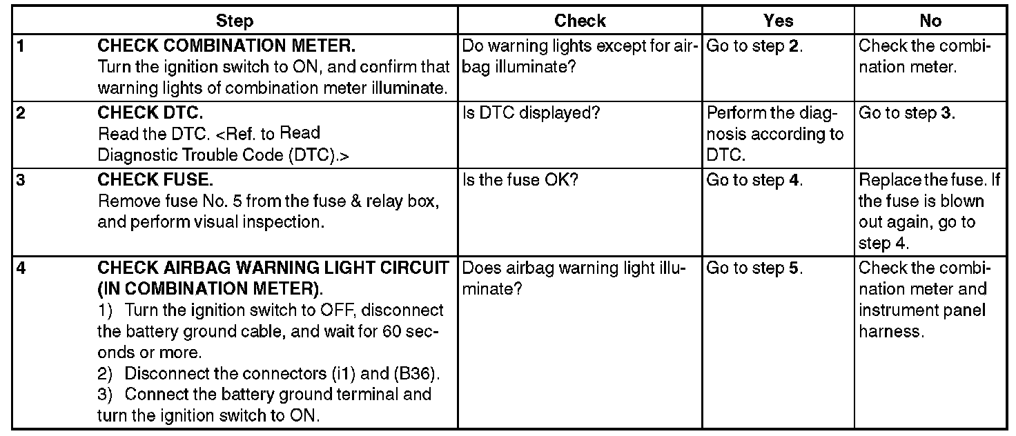 AIRBAG WARNING LIGHT REMAINS OFF