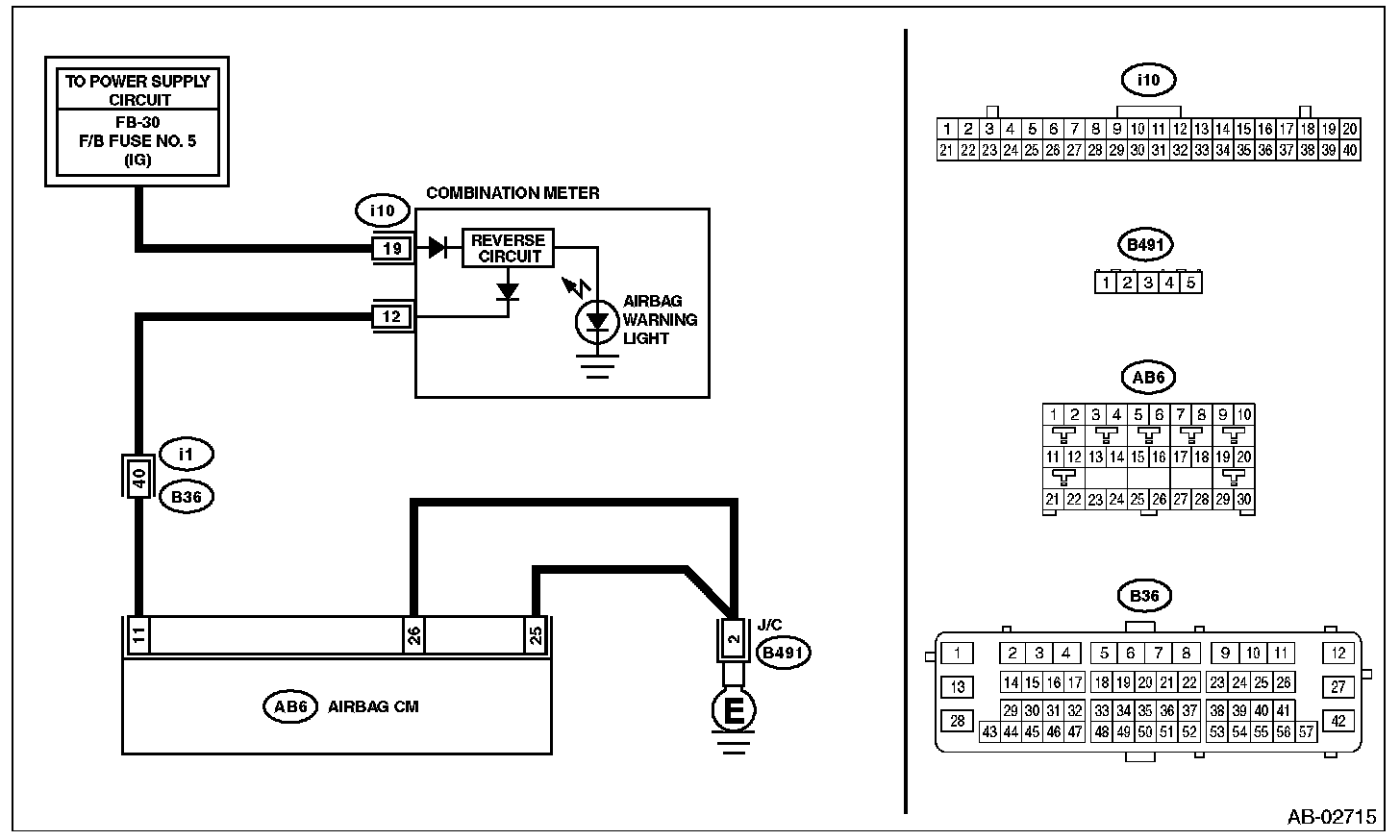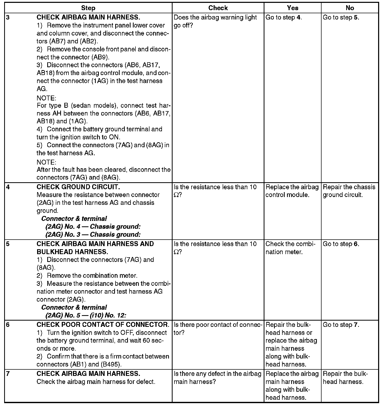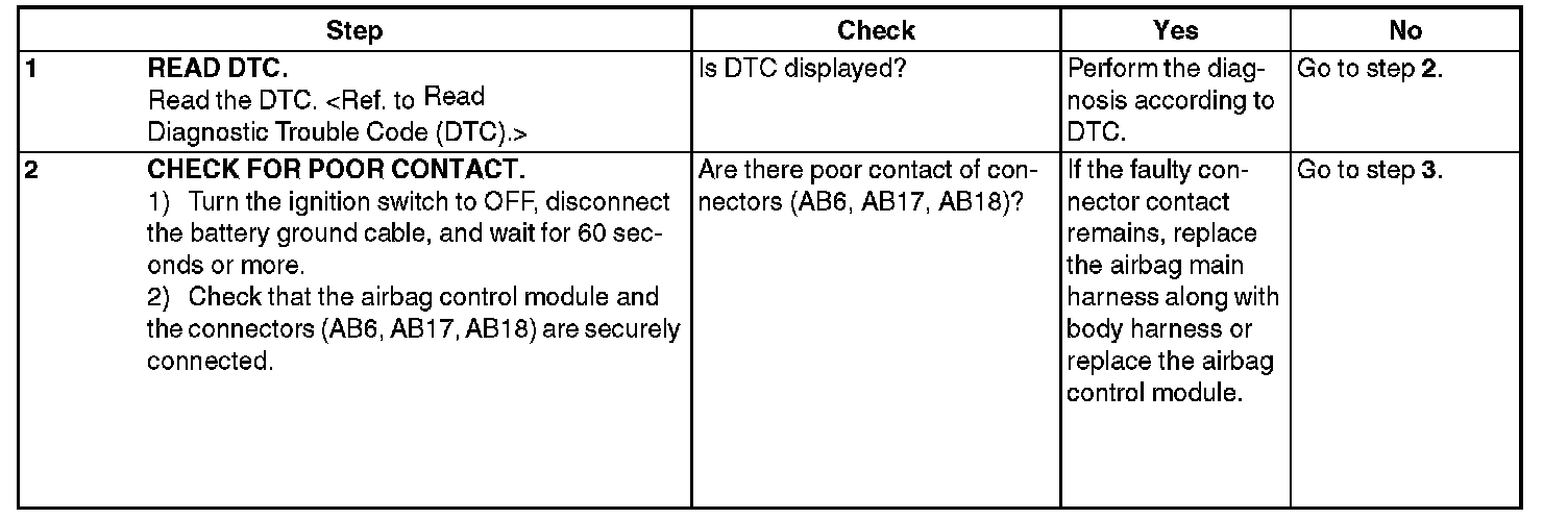 - Connections of (AB6, AB17, AB18) to airbag control module are improper.