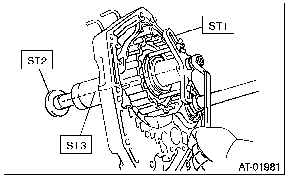 3) Using the ST1, ST2 and ST3, remove the snap ring.