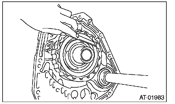 8) Remove the snap ring, replace the driven plate used in measurement of clearance with the retaining plate, and then reassemble.
