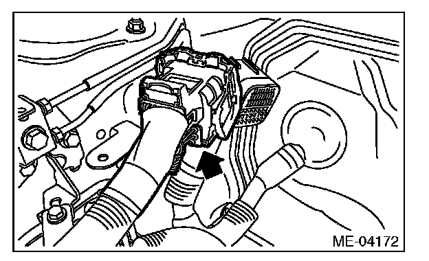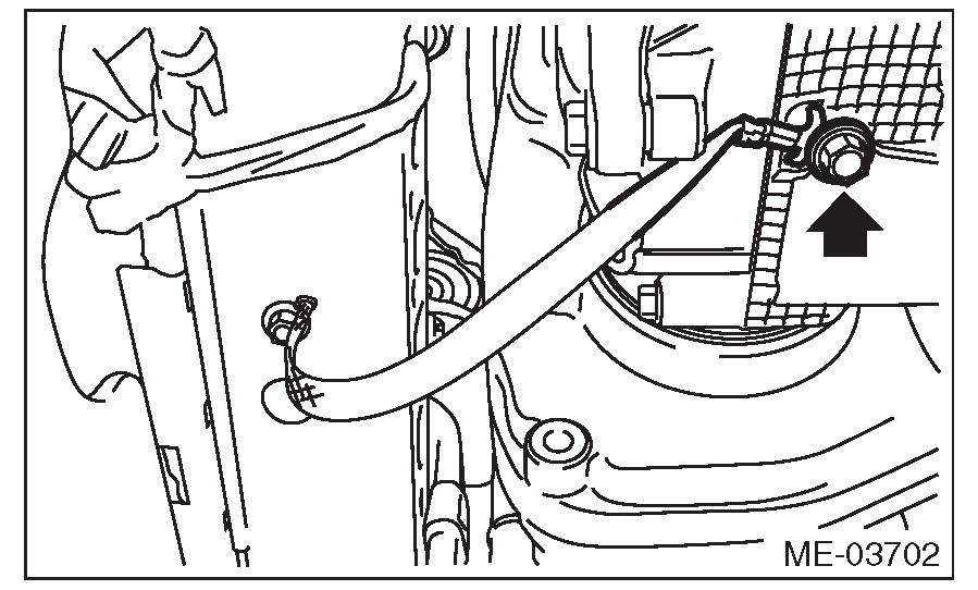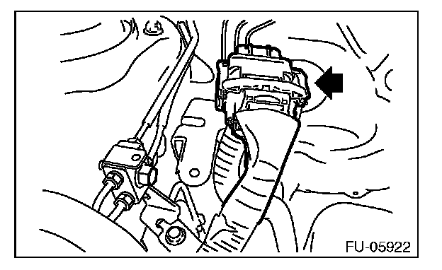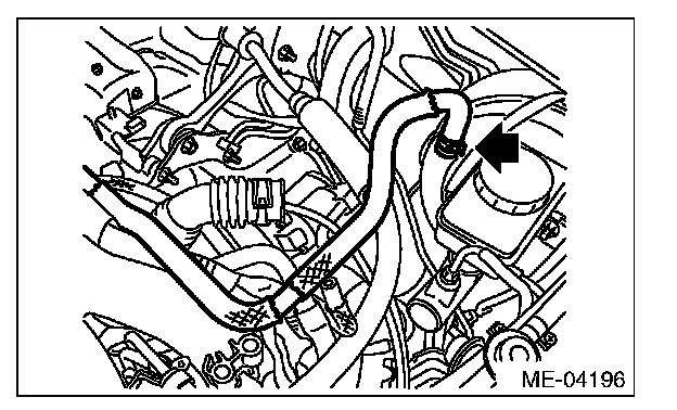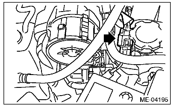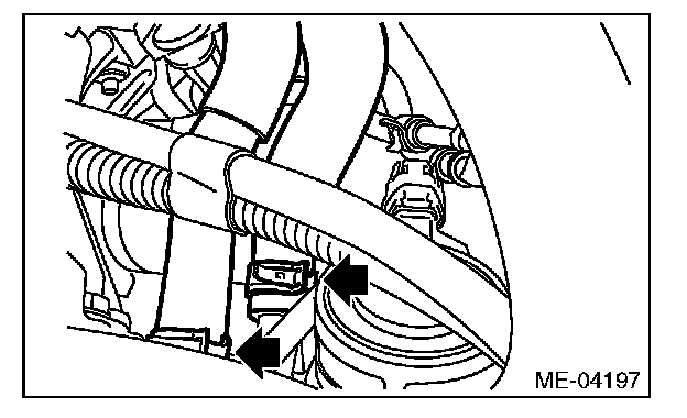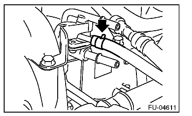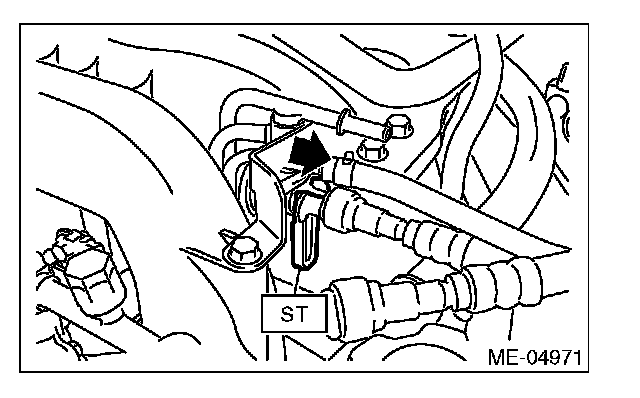 26) Attach ST to the fuel delivery pipe and push ST in the direction of arrow mark to disconnect the fuel delivery hose.