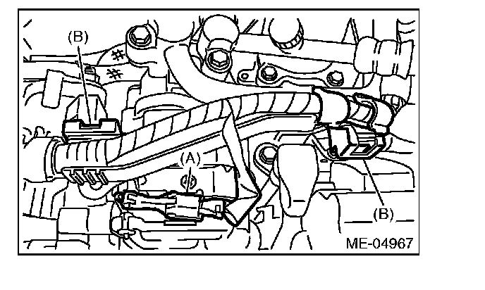 19) Secure the generator cord using the clip (B) and connect the connector (A) to A/C compressor.