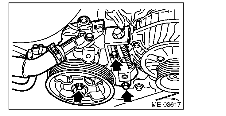 Be careful not to damage adjacent parts or body panels with crank pulley, oil level gauge, etc.