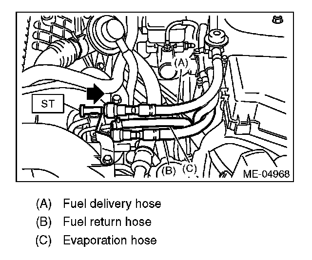 (1) Attach ST to the fuel return pipe as shown in the figure.