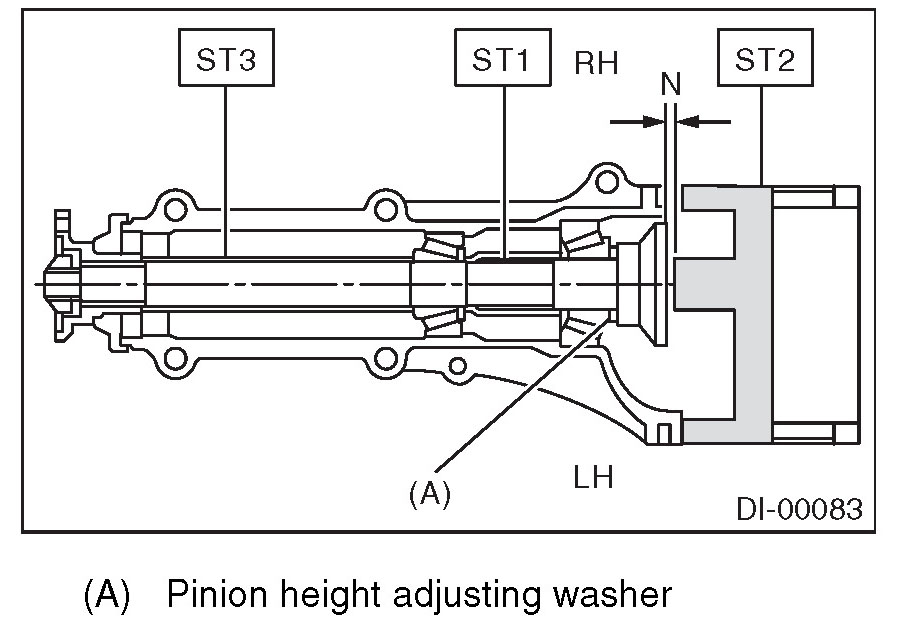 At this time, install a provisionally selected or previously used pinion height adjusting washer. Measure and record the thickness.