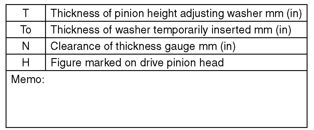 (3) Obtain the thickness of pinion height adjusting washer to be inserted from the following formula, and replace the temporarily installed washer with this one.