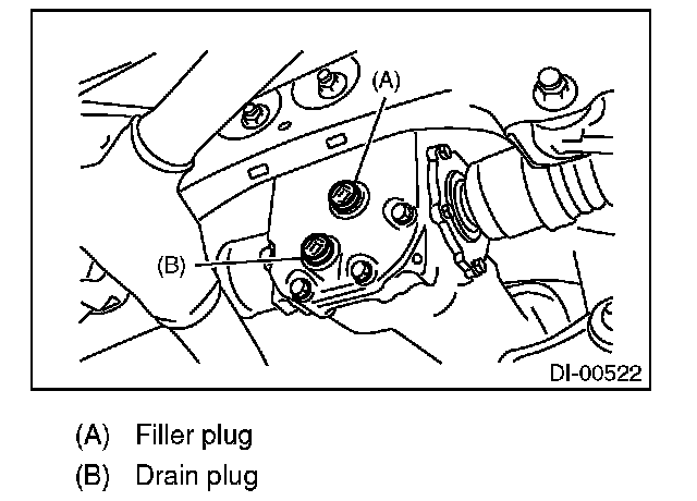 ^ Be careful not to spill the differential gear oil on exhaust pipe. If gear oil is spilled, wipe it off completely.