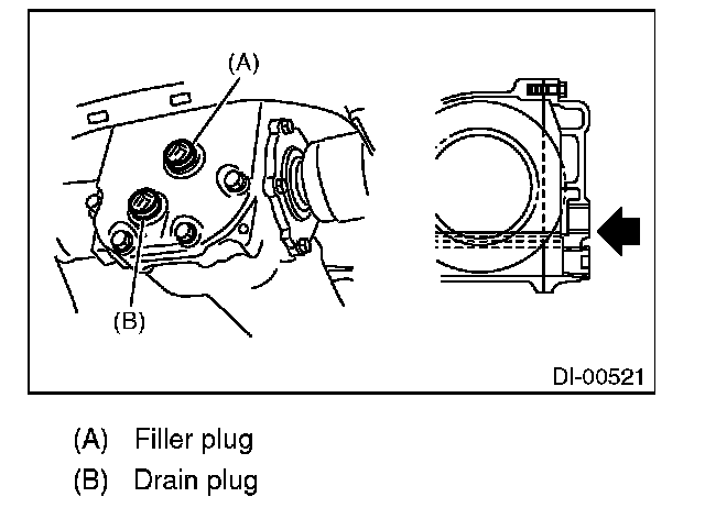 4) Fill the differential carrier with gear oil to the bottom of filler plug.