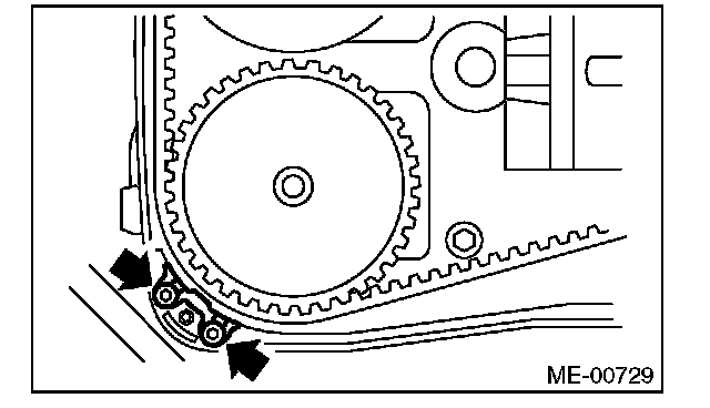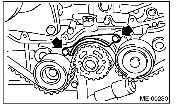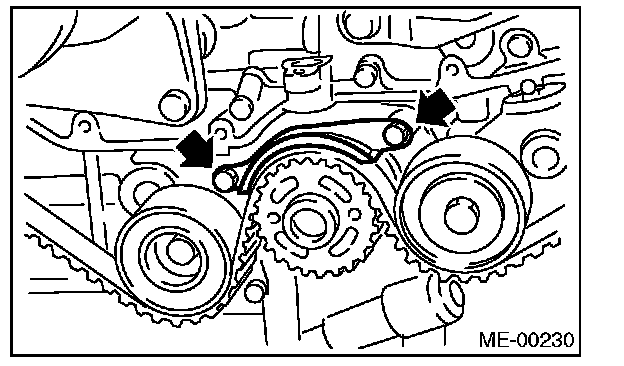 (2) Using white paint, put an alignment mark or an arrow mark on timing belts in relation to the crank sprocket and cam sprockets.