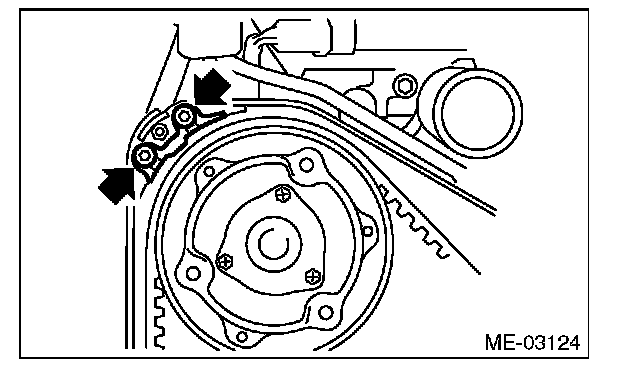 (1) Temporarily tighten the bolts securing the timing belt guide.