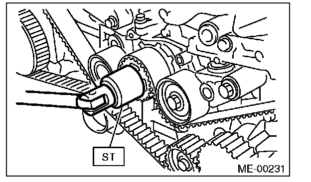 Make sure that the marks on the timing belt and sprockets are aligned.