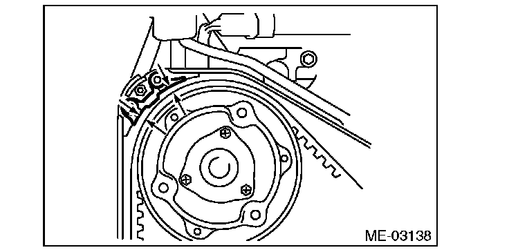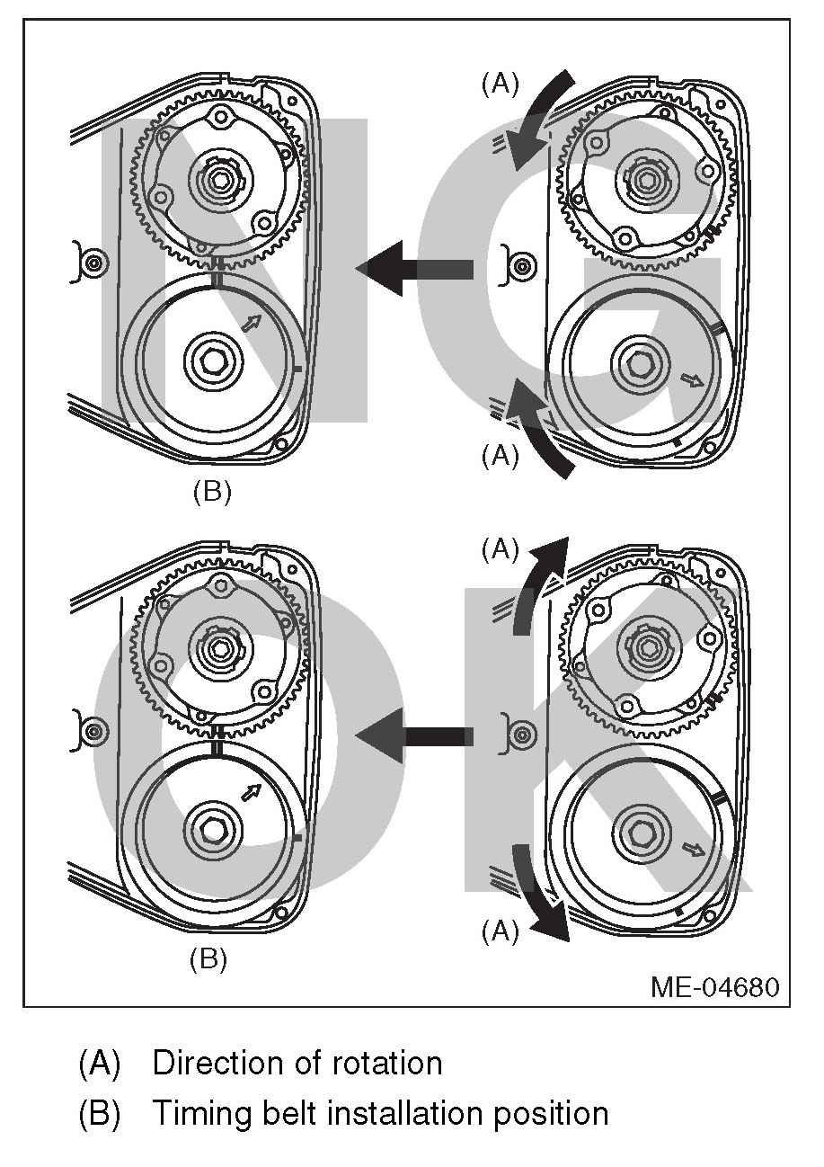 4) If the alignment mark or arrow mark (which indicates the direction of rotation) on timing belt fade away, put new marks before removing the timing belt as shown in procedures below.