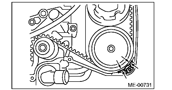 2) Check the condition on the back surface of the timing belt. If cracks are found, replace the timing belt.