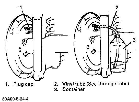 6) When bubbles stop, depress and hold brake pedal and tighten bleeder plug.