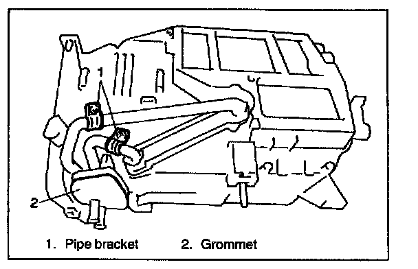 11. Remove heater core pipe clamps and grommet.