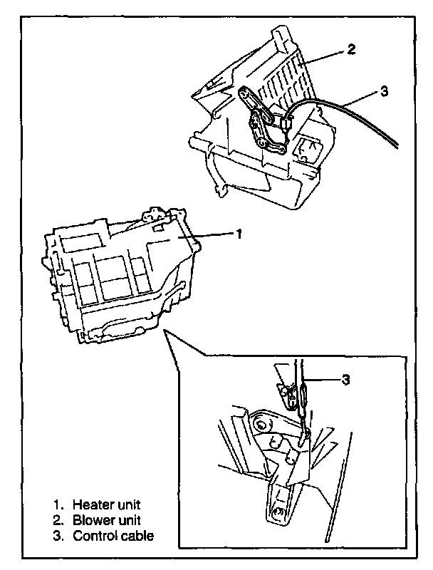 5. Disconnect control cables from blower motor unit and heater unit.