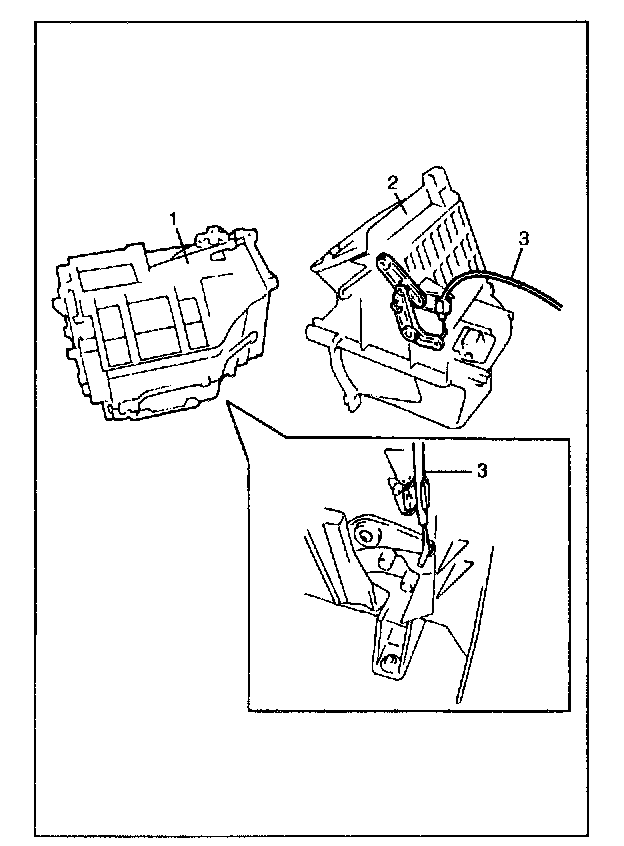 5. Disconnect control cables (3) from blower motor unit (2) and heater unit (1).