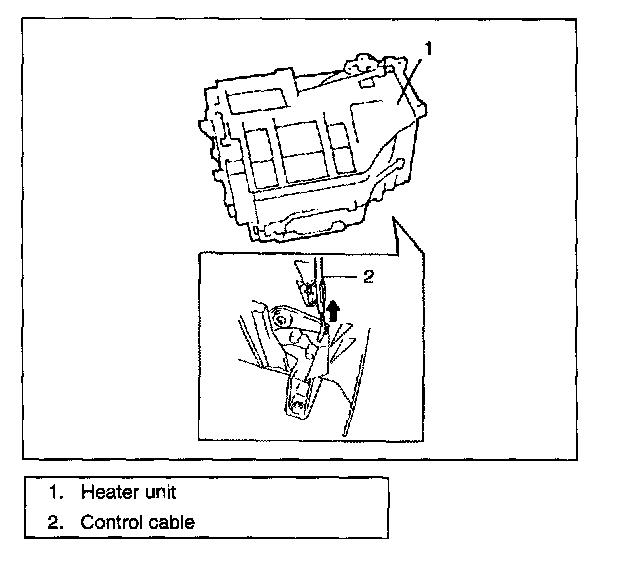 7. Remove heater control lever assembly (2).