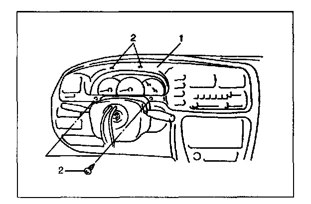 4. Remove meter cluster hood (1) by removing its mounting screws (2).