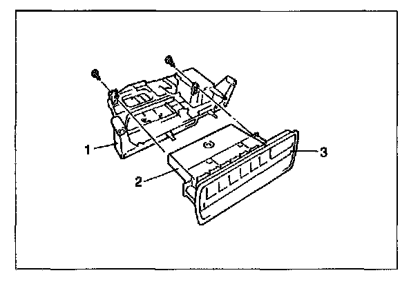 5. Remove ashtray, center garnish (1) and instrument glove box compartment.