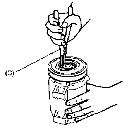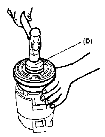 b. Place special tool (D) onto magnet clutch bearing, and then hit top of special tool by hammer.