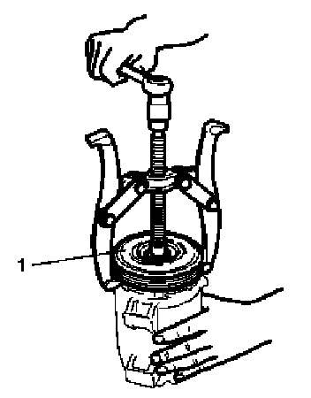 2. Fix armature plate (1) with special tool (A) and remove armature plate bolt.