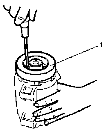 4. Using special tool (A), tighten new armature plate bolt (1) to specified torque.