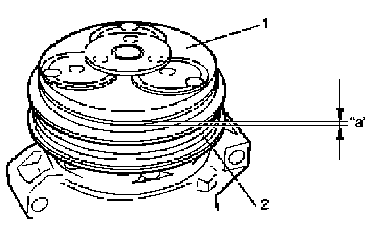 Standard clearance between armature plate and magnet clutch a: 0.3 - 0.7 mm (0.012 - 0.028 in.)
