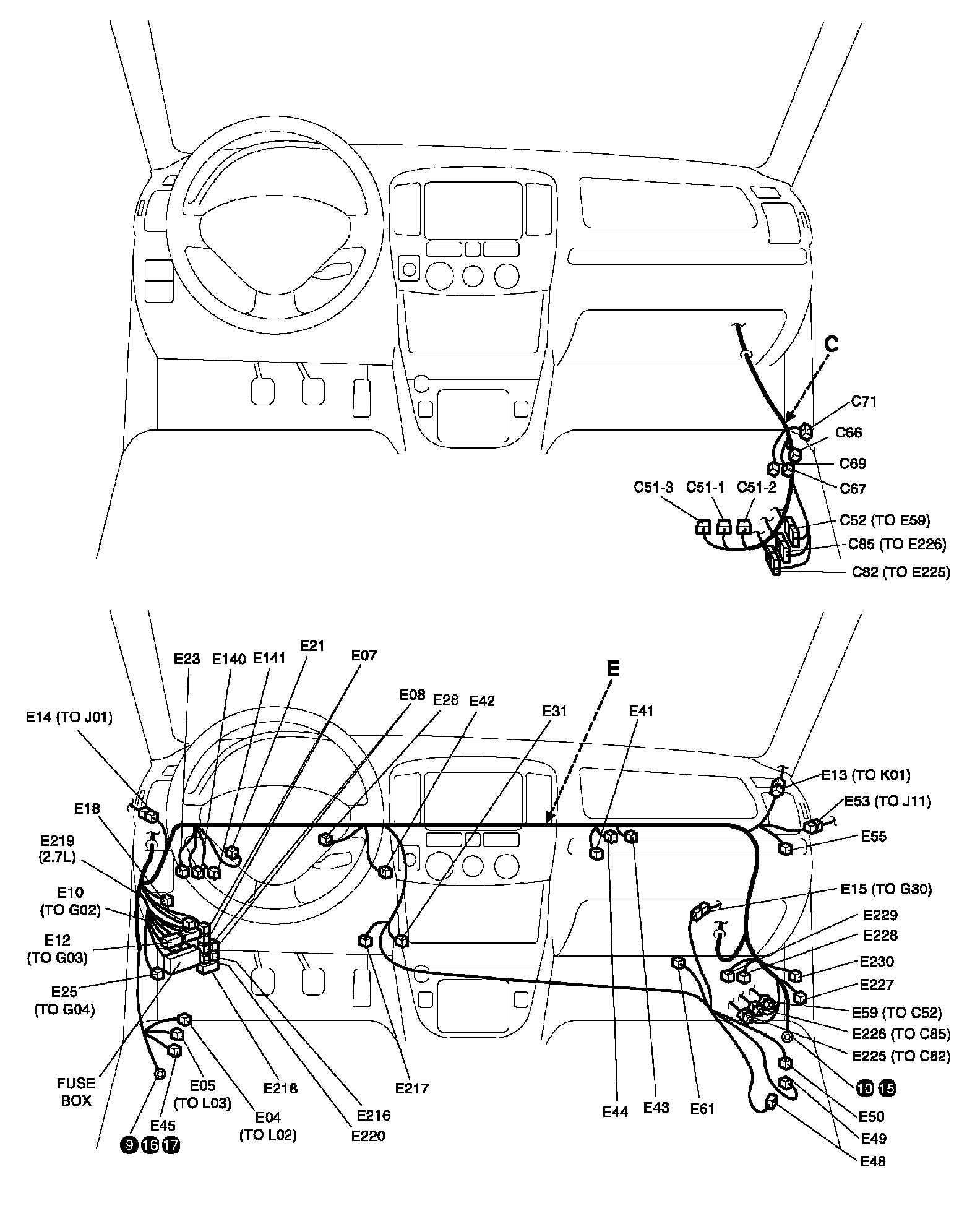 C: Engine harness / E: Main harness View: