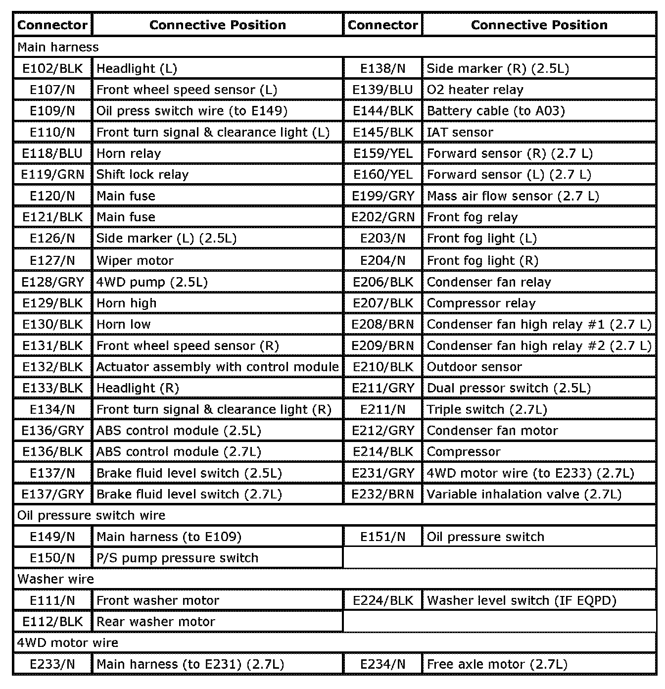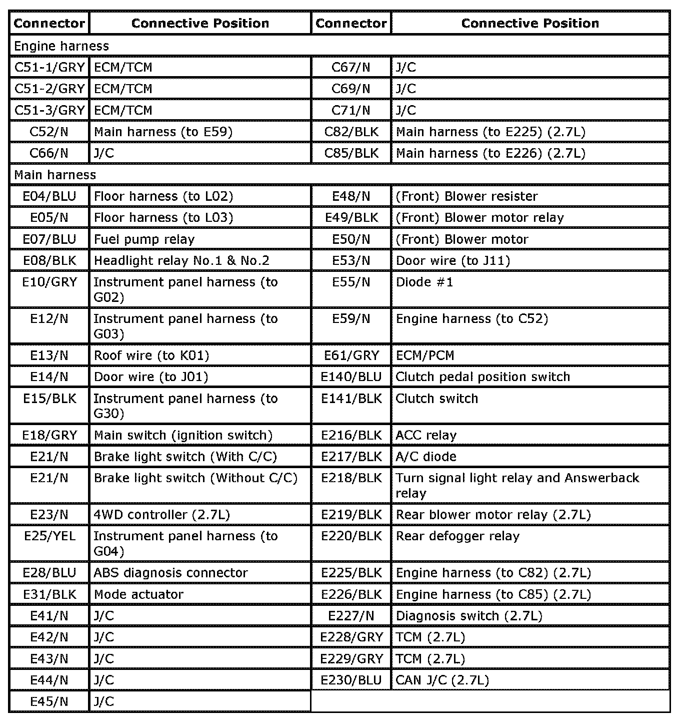 C: Engine harness / E: Main harness Index: