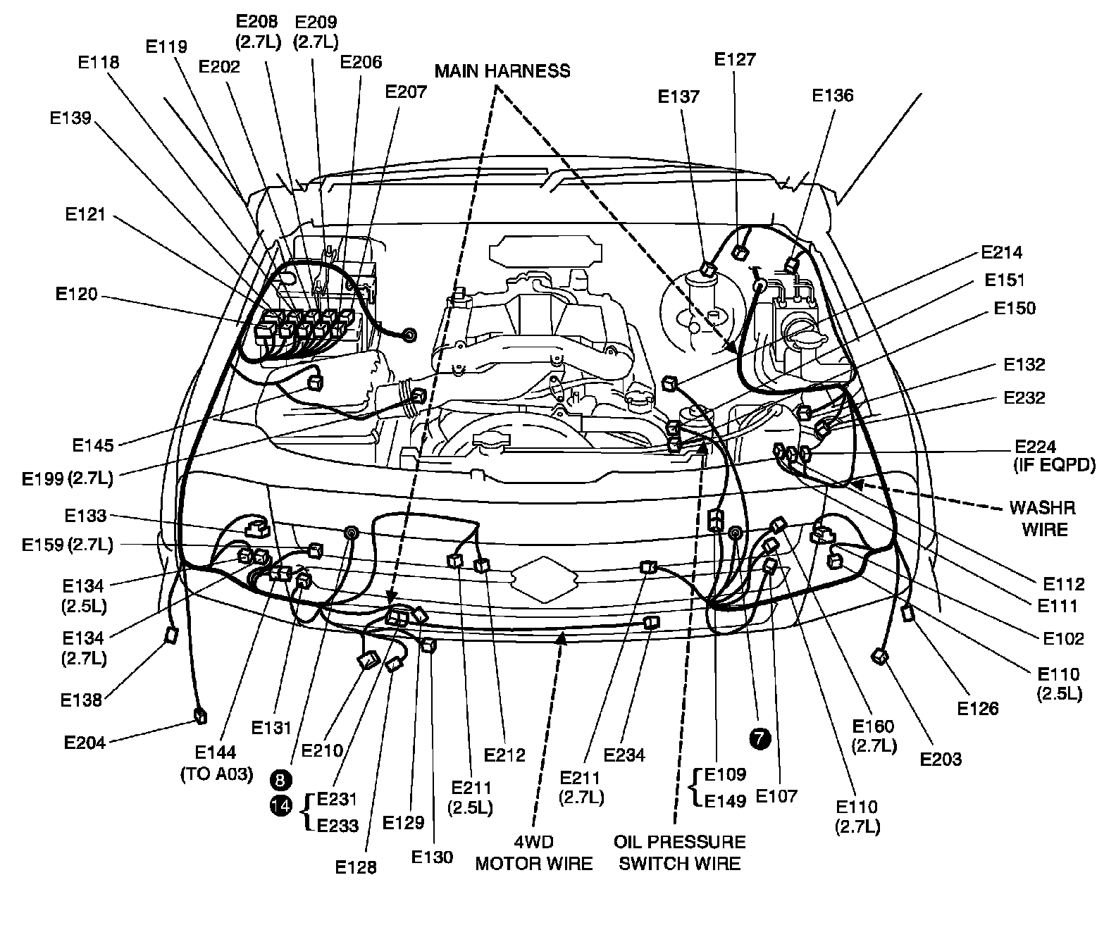 E: Main Harness, Oil Pressure Switch Wire And Washer Wire Index: