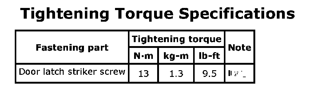Reference: For the tightening torque of fastener not specified, refer to Fastener Information.