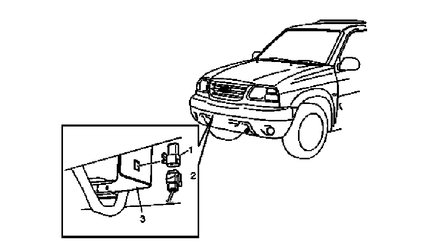 2. Remove outside air temperature sensor (1) from 4WD air pump assembly bracket (3).