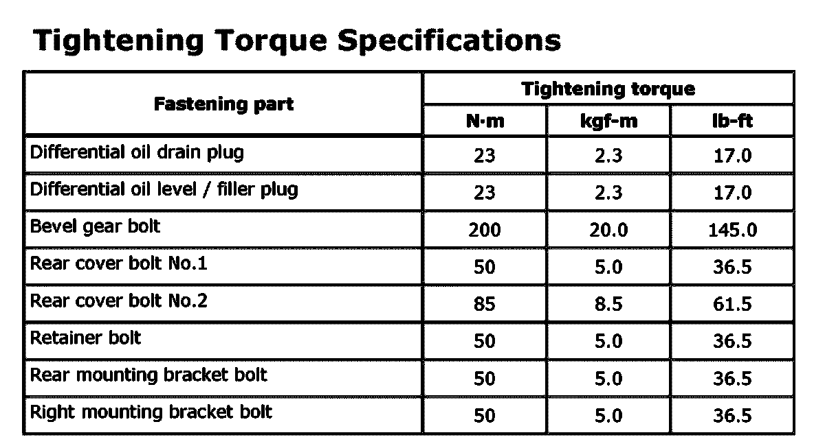 Tightening Torque SpecificationsNOTE: The specified tightening torque is also described in the following.