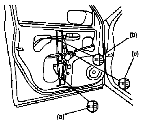 Front door window regulator screw tightening order (a) -> (b) ->(c)
