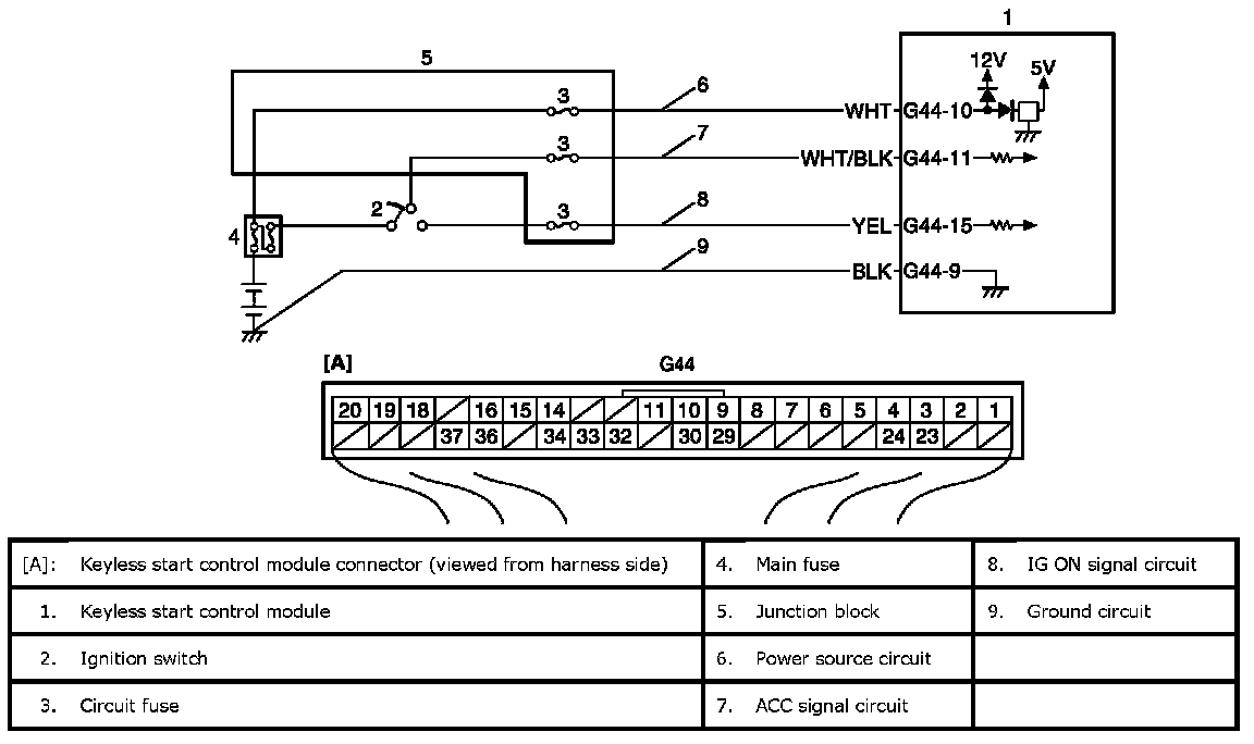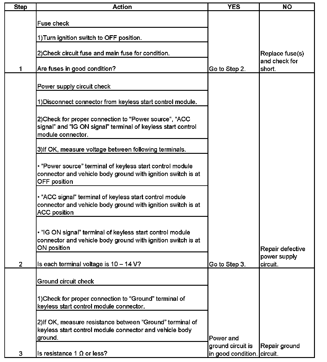 Keyless Start Control Module Power and Ground Circuit Check