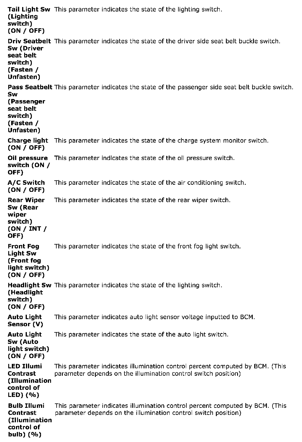 Scan Tool Data Definitions