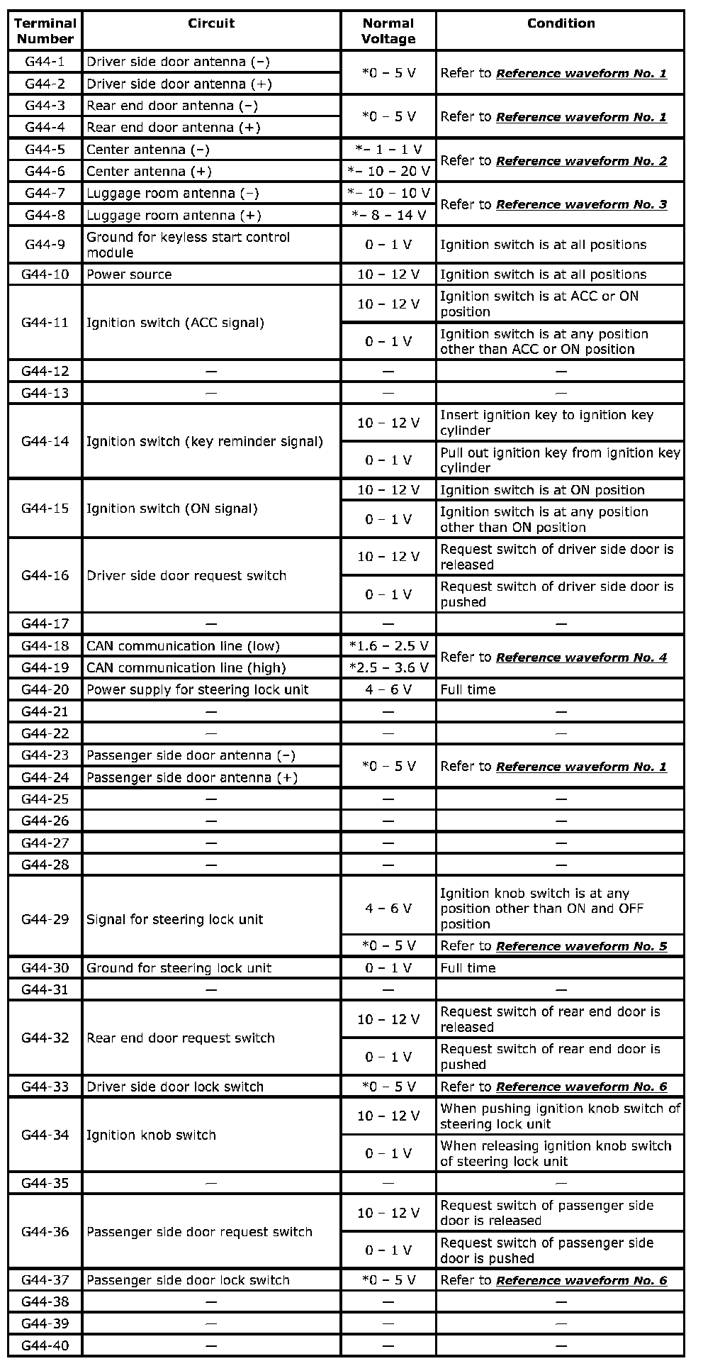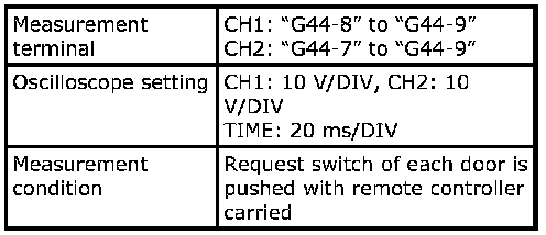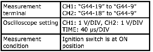 - As each terminal voltage is affected by the battery voltage, confirm that it is 11 V or more when ignition switch is ON.