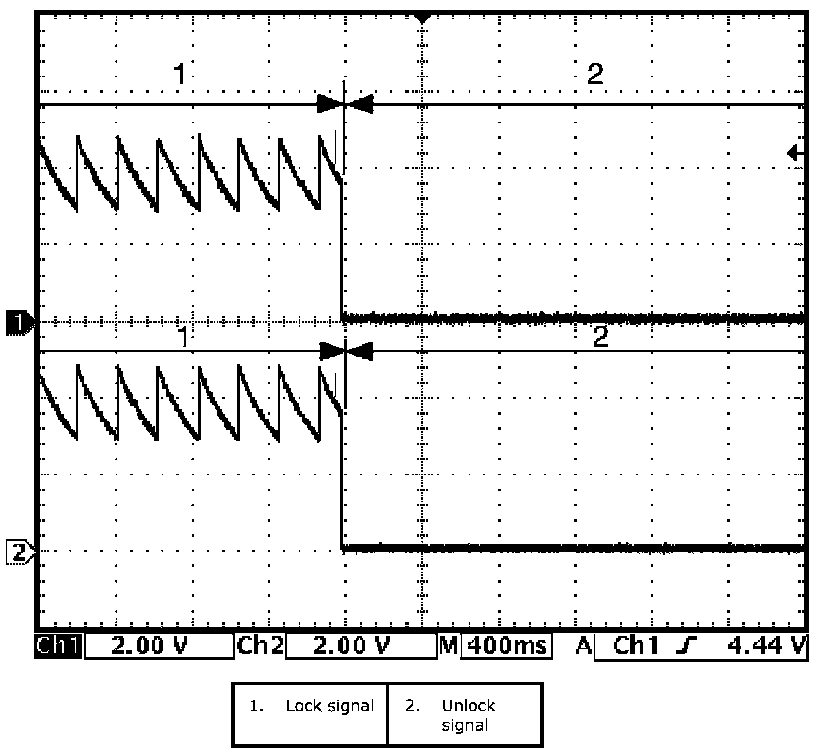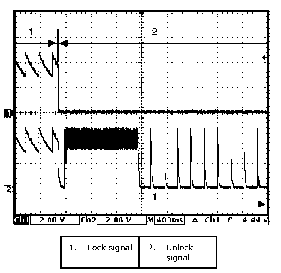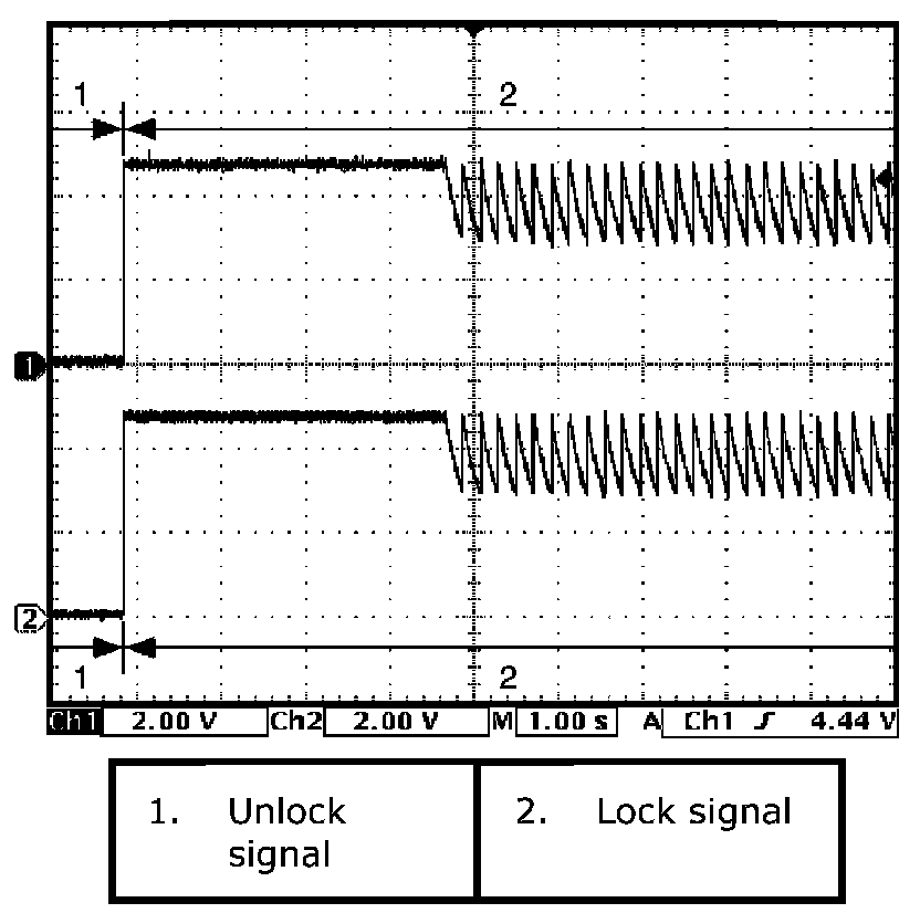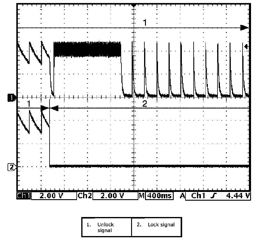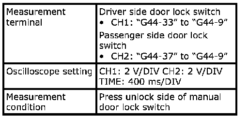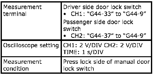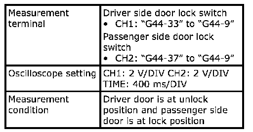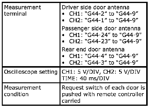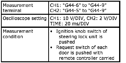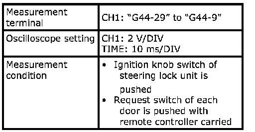 (Signal (1) communicated between keyless start control module and steering lock unit when measurement condition described below applies)